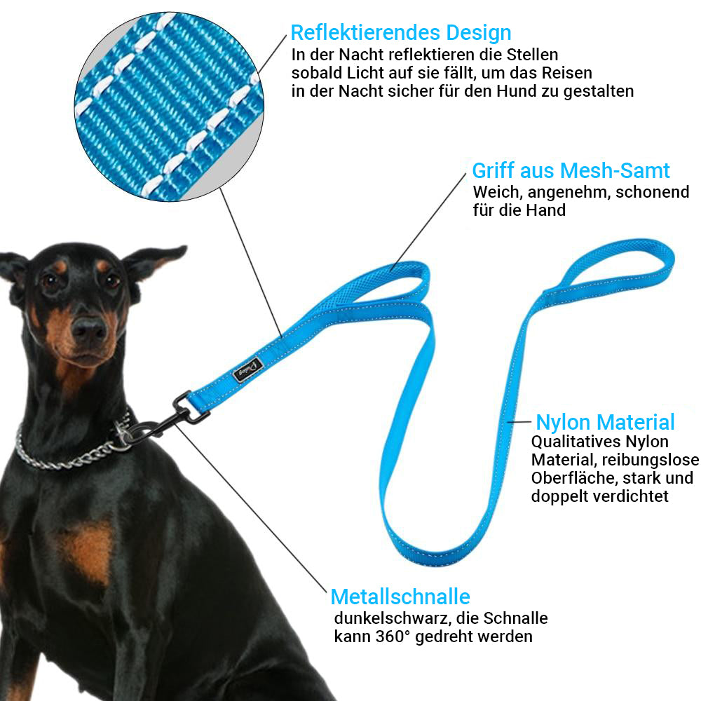 Ideal für große, mittlere und sogar einige kleine Hunderassen. Unsere Doppelgriff Hundeleine ist ein Muss für jeden bewussten Hundebesitzer, dem sein vierbeiniger Begleiter am Herzen liegt!